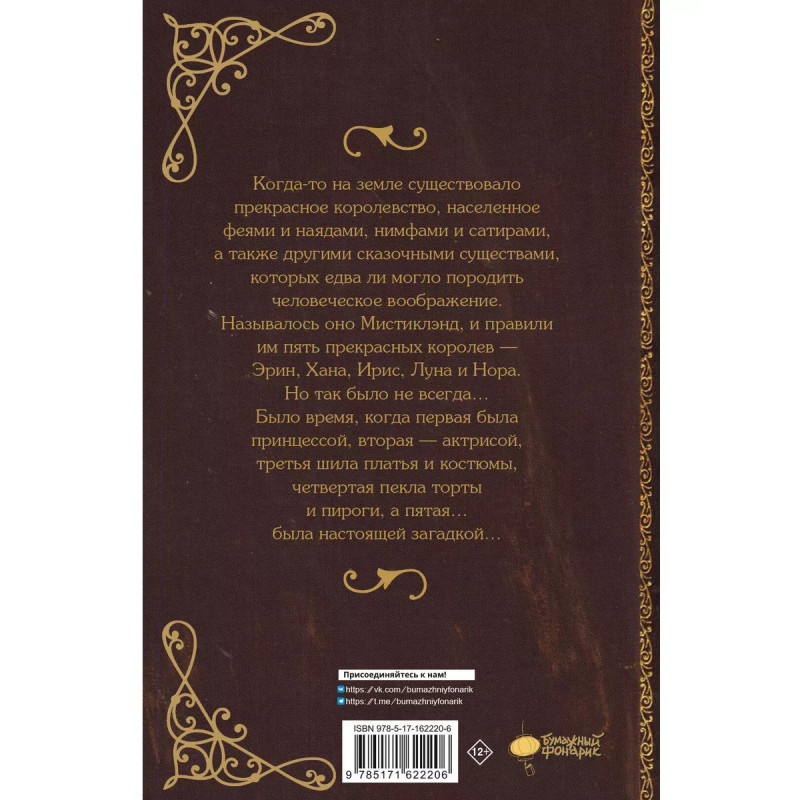 Сказочные существа, живущие в королевстве Мистиклэнд, готовятся отпраздновать возвращение своего короля из похода в опасные Запретные Земли, но неожиданно происходит страшное! Все жители королевства засыпают, а затем просыпаются другими агрессивными и пугающими. И это таинственное Проклятие лишь набирает обороты, заставляя людей совершать ужасные вещи Однако оно совершенно не действует на пятерых обычных девочек: принцессу, швею, актрису, кондитера и девушку-тайну. Казалось бы, их совершенно ничего не связывает, но теперь они единственные, кто может спасти мир, пока не стало слишком поздно. Книга содержит потрясающие цветные сюжетные иллюстрации популярной испанской художницы Лайи Лопес.