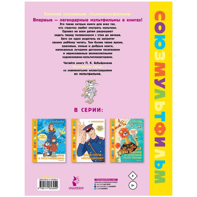 Золотая коллекция "Союзмультфильма" Впервые - легендарные мультфильмы в книгах! Это такие хитрые книги для всех тех, кто страстно любит смотреть мультики. Однако не всем детям разрешают сидеть перед телевизором с утра до вечера. Зато ни один родитель не запретит своему ребёнку читать. Тем более такие яркие, красивые, умные и добрые книги, написанные лучшими детскими писателями и нарисованные великолепными художниками-мультипликаторами. Читайте книгу П. К. Асбьёрнсена "Королевские зайцы" со знаменитыми иллюстрациями из мультфильма.