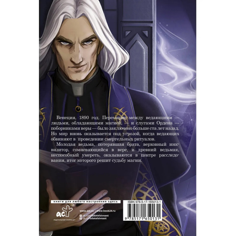 Альтернативный XIX век. Ведьмы и ведьмаки живут бок о бок с простыми людьми и управляются Ковеном. Несмотря на перемирие с главным религиозным институтом в мире — Орденом Первозданного, — скрытая вражда магии и веры продолжается. Молодая ведьма, специалист по проклятиям, Эстер Кроу оказывается втянута в расследование ритуальных убийств, в которых обвиняют таких, как она. Сумеет ли она очистить доброе имя ведающих и открыть тайну смерти брата, или туманная Венеция поглотит её, несмотря на покровительство древнего ведьмака и верховного инквизитора?