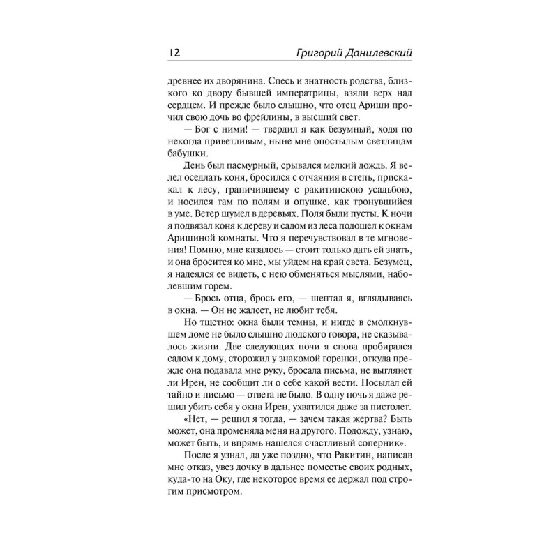 Признанная классика русской литературы. Творчество Григория Данилевского делится на два периода. В начале своего творчества автор в основном писал этнографические повести о малороссийском быте, которые не пользовались большим спросом публики. Однако затем писатель переключился на историческую беллетристику и результат не заставил себя ждать. В последнюю половину XIX века исторические романы Григория Данилевского пользовались большой популярностью среди читающей публики и они не утратили своей привлекательности и сейчас. В данное издание вошли романы Княжна Тараканова и Сожженная Москва.