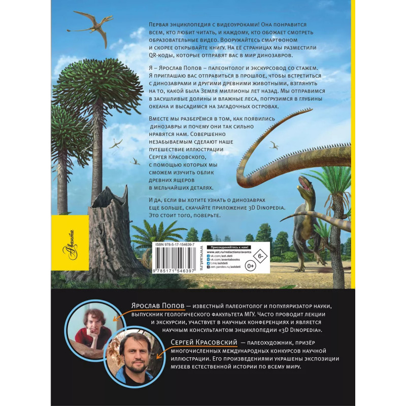 Динозавры. Путешествие в прошлое. Я - Ярослав Попов - палеонтолог и экскурсовод со стажем. Я приглашаю вас отправиться в прошлое, чтобы встретиться с динозаврами и другими древними животными, взглянуть на то, какой была Земля миллионы лет назад. Мы отправимся в засушливые долины и влажные леса, погрузимся в глубины океана и высадимся на загадочных островах. Вместе мы разберёмся в том, как появились динозавры и почему они так сильно нравятся нам. Совершенно незабываемым сделают наше путешествие иллюстрации Сергей Красовского, с помощью которых мы сможем изучить облик древних ящеров в мельчайших деталях. Для среднего школьного возраста.