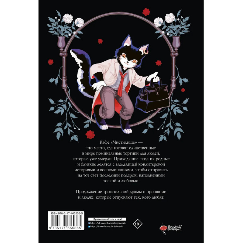 Добро пожаловать в единственное в мире кафе "Чистилище"! Те, кто потерял драгоценного человека, приходят и рассказывают Марго, владелице кондитерской, о том, что умершему нравилось при жизни. Марго тщательно записывает их истории и печет поминальные тортики, наполненные тоской и любовью, которые помогут на том свете душе добраться до врат реинкарнации. Книга продолжает первый том, добавляя еще две истории. Третья про солистку рок-группы, которая, несмотря ненавистников и предрассудки, смогла завоевать сердца миллионов людей; четвертая про пожилую фокусницу и маленькую девочку-кошечку, которые не отказались от своих сокровенных желаний несмотря на то, что те причинили им боль. Манхва "Поминальные тортики из кафе Чистилище" стала безумно популярной в Корее и набрала 4400 % на краудфандинговой платформе Tumblbug. Для широкого круга читателей.