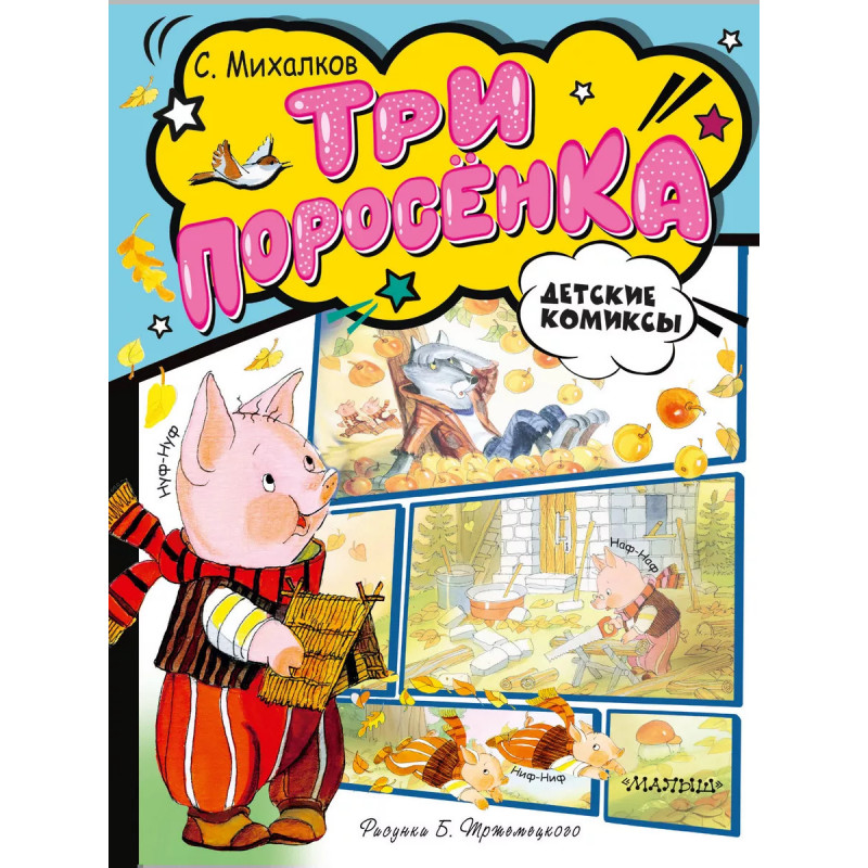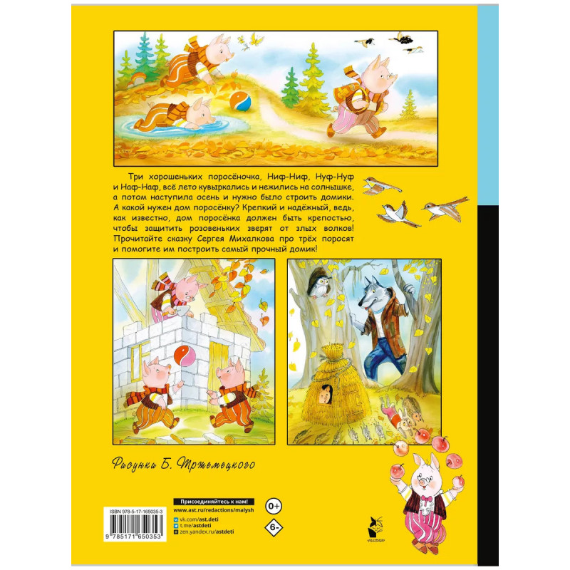 Три хорошеньких поросёночка, Ниф-Ниф, Нуф-Нуф и Наф-Наф, всё лето кувыркались и нежились на солнышке, а потом наступила осень и нужно было строить домики. А какой нужен дом поросёнку? Крепкий и надёжный, ведь, как известно, дом поросёнка должен быть крепостью, чтобы защитить розовеньких зверят от злых волков! Прочитайте сказку Сергея Михалкова про трёх поросят и помогите им построить самый прочный домик!