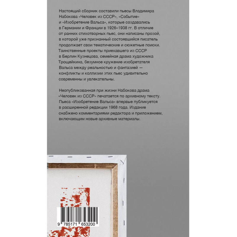 Настоящий сборник составили пьесы Владимира Набокова "Человек из СССР", "Событие" и "Изобретение Вальса", создававшиеся в Германии и Франции в 19261938 гг. В отличие от ранних стихотворных пьес, они написаны прозой, в которой уже признанный писатель продолжает свои тематические и сюжетные поиски. Таинственные проекты приехавшего из СССР в Берлин Кузнецова, семейная драма художника Трощейкина, безумное кружение изобретателя Вальса между реальностью и фантазией конфликты и коллизии этих пьес удивительно современны и увлекательны. Неопубликованная при жизни Набокова драма "Человек из СССР" печатается по архивному тексту. Пьеса "Изобретение Вальса" впервые публикуется в расширенной редакции 1968 года. Издание снабжено комментариями редактора и приложением, включающим новые архивные материалы.