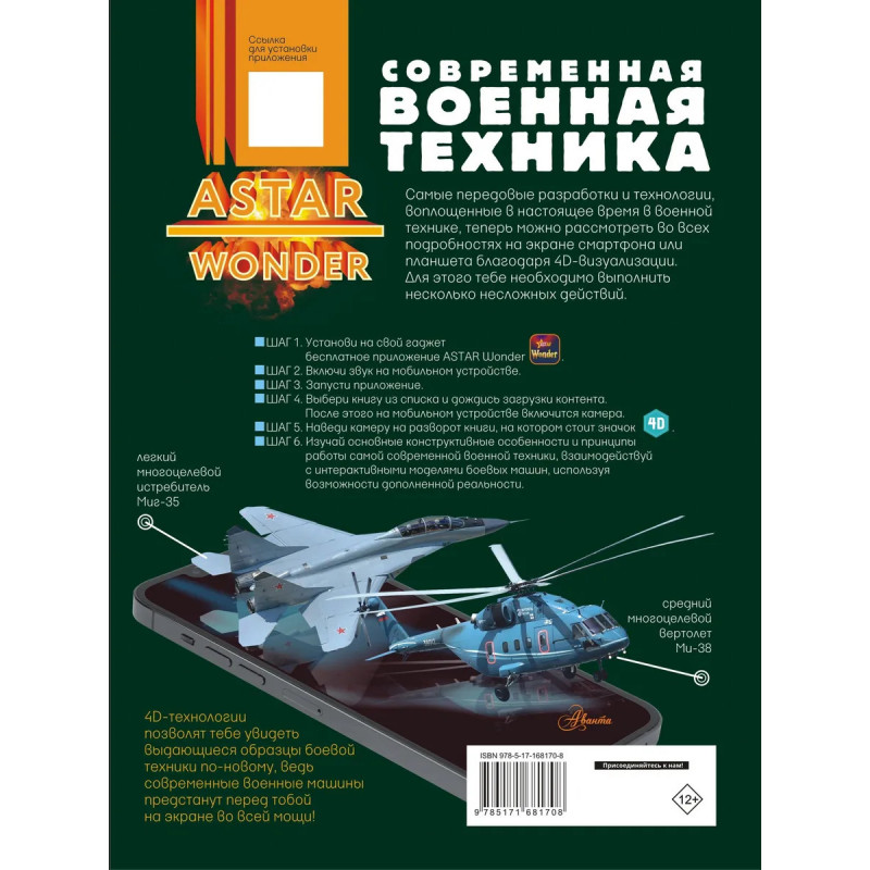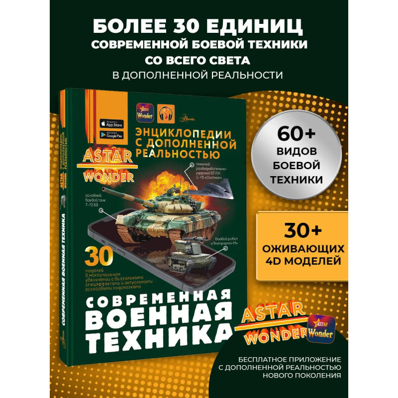 В этой энциклопедии, посвященной новейшим образцам боевой техники, последние военные разработки показаны через призму технологии дополненной реальности. Благодаря 4D-визуализации можно в деталях рассмотреть на экране смартфона, как "работают" беспилотные наземные и летательные аппараты, танки