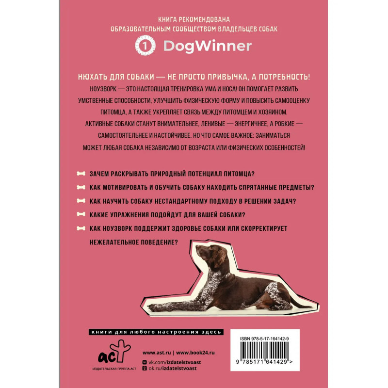Нюхать для собаки — не просто привычка, а потребность! Ноузворк — это настоящая тренировка ума и носа! Он помогает развить умственные способности, улучшить физическую форму и повысить самооценку питомца, а также укрепляет связь между питомцем и хозяином. Активные собаки станут внимательнее, ленивые — энергичнее, а робкие — самостоятельнее и настойчивее. Но что самое важное: заниматься может любая собака независимо от возраста или физических особенностей! • Зачем раскрывать природный потенциал питомца? • Как мотивировать и обучить собаку находить спрятанные предметы? • Как научить собаку нестандартному подходу в решении задач? • Какие упражнения подойдут для вашей собаки? • Как ноузворк поддержит здоровье собаки или скорректирует нежелательное поведение?