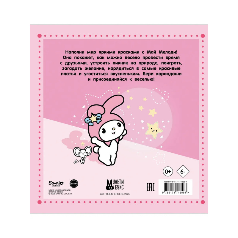 Наполни мир яркими красками с Май Мелоди! Она покажет, как можно весело провести время с друзьями, устроить пикник на природе, поиграть, загадать желание, нарядиться в самые красивые платья и угоститься вкусненьким. Бери карандаши и присоединяйся к веселью!