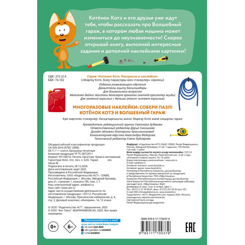 Эта увлекательная книга с яркими пазлами-наклейками и интересными заданиями создана специально для маленьких поклонников мультфильма «Котёнок Котэ»! Внутри тебя ждут любимые персонажи, интересные и разнообразные задания, которые помогут развить внимание, логику, творческое мышление и мелкую моторику. Ты сможешь дополнить картинку наклейками самостоятельно.