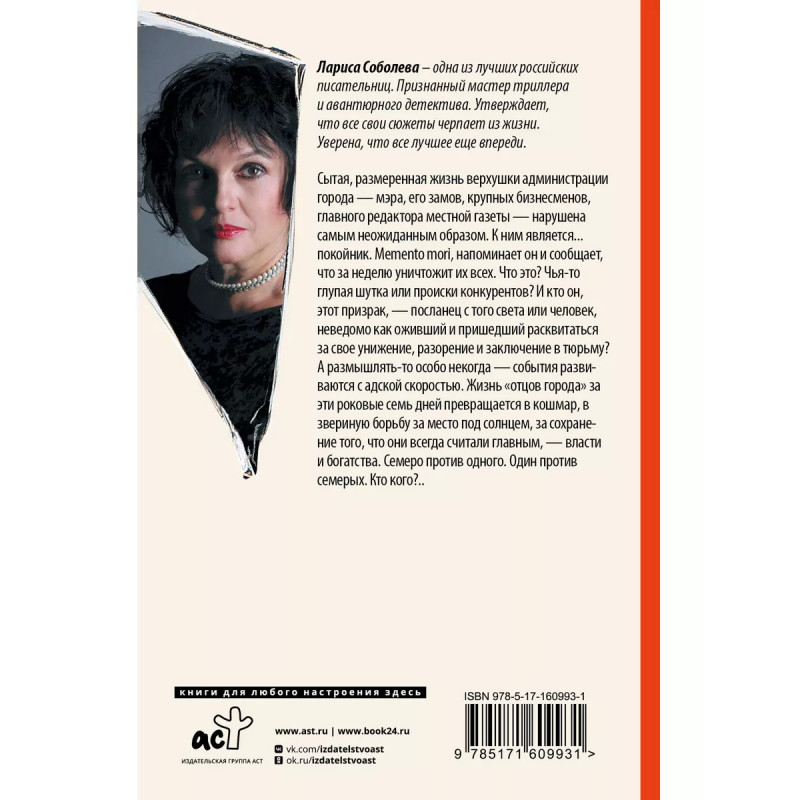 Рандеву с покойником. Переиздание романа Ларисы Соболевой в новом удобном формате! Для поклонников творчества Анны Малышевой, Елены Михалковой и Натальи Андреевой! Размеренная жизнь верхушки города - мэра, его замов, крупных бизнесменов, главного редактора местной газеты - внезапно оказалась под угрозой, когда к ним на порог явился покойник. Самый настоящий покойник. И заявил, что за неделю расправится со всеми ними. Это что, какая-то шутка? А может, действительно вестник с того света решил покарать их за грехи? Как бы то ни было, теперь самые важные и влиятельные люди должны сделать все, чтобы выстоять в этой неравной игре со смертью. А главная их задача - понять, что однажды даже им придется платить по счетам