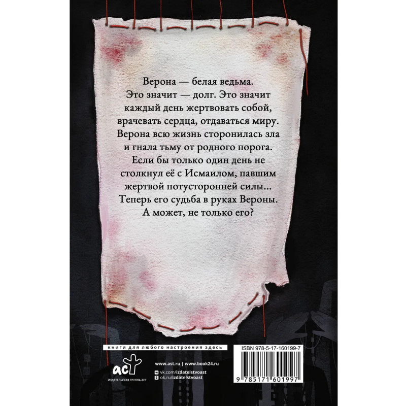 Верона — белая ведьма. Это значит — долг. Это значит каждый день жертвовать собой, врачевать сердца, отдаваться миру. Верона всю жизнь сторонилась зла и гнала тьму от родного порога. Если бы только один день не столкнул ее с Исмаилом, павшим жертвой потустороней силы... Теперь его судьба в руках Вероны. А может, не только его?