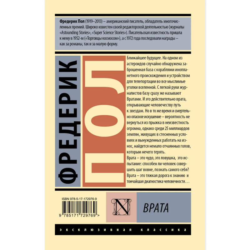 — Фредерик Пол — выдающийся мастер научной фантастики, карьера которого растянулась на шесть десятилетий. — «Врата» — первая книга культового цикла «Хичи», лауреат премий «Хьюго», «Локус» и «Небьюла». — Для читателей Филипа К. Дика, Артура Кларка и Вернора Винджа. — Издание в серии «Эксклюзивная классика» — в удобном карманном формате и узнаваемом оформлении.