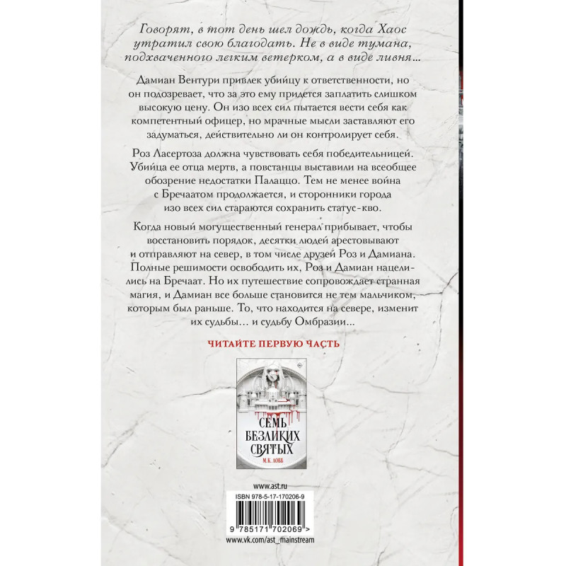 – Вторая часть дилогии «Семь безликих святых». – Темное детективное фэнтези с нешаблонной романтической линией и интригующими загадками. – Сеттинг фэнтезийного мира, вдохновенного Италией девятнадцатого века. – Для поклонников романа «Неночь» Джея Кристоффа, циклов «Академия Черной птицы» Стеллы Так и «Гришаверс» Ли Бардуго.