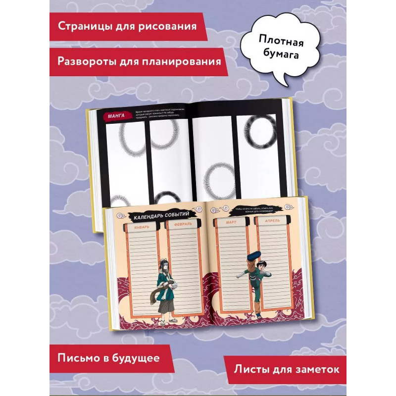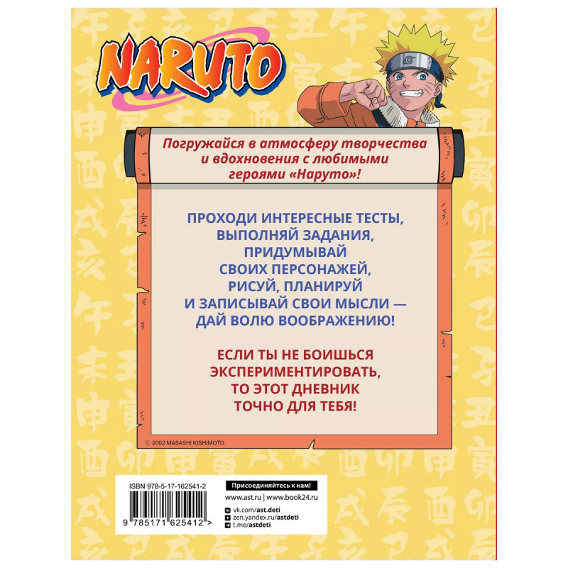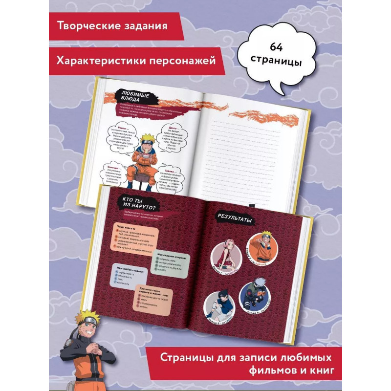 Погружайся в атмосферу творчества и вдохновения с любимыми героями "Наруто"! Проходи интересные тесты, выполняй задания, придумывай своих персонажей, рисуй, планируй и записывай свои мысли - дай волю воображению! Если ты не боишься экспериментировать, то этот дневник точно для тебя!