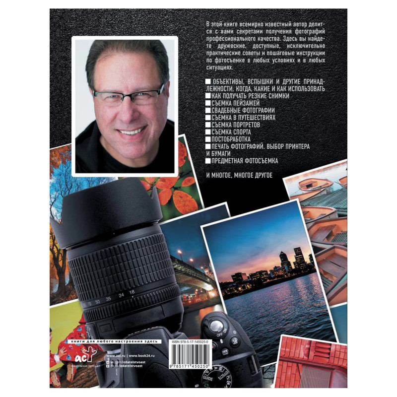 Фотография шаг за шагом. Просто и понятно. В этой книге всемирно известный автор Скотт Келби делится с вами секретами получения фотографий профессионального качества. Здесь вы найдете дружеские, доступные, исключительно практические советы и пошаговые инструкции по фотосъемке в любых условиях и в любых ситуациях: объективы, вспышки и другие принадлежности: когда, какие и как использовать; как получать резкие снимки; съемка пейзажей; свадебные фотографии; съемка в путешествиях; съемка портретов; съемка спорта; постобработка; печать фотографий. Выбор принтера и бумаги; предметная фотосъемка и многое, многое другое!