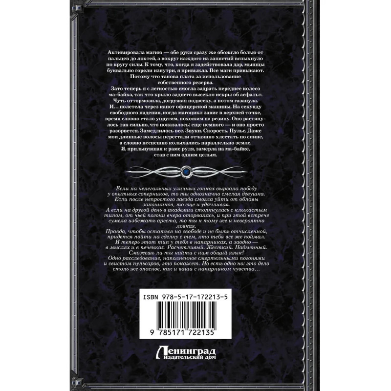 Если на нелегальных уличных гонках вырвала победу у опытных соперников, то ты однозначно смелая девушка. Если после непростого заезда смогла уйти от облавы законников, то еще и удачливая. А если на другой день в академии столкнулась с клыкастым типом, от чьей погони вчера оторвалась, и при этой встрече сумела избежать ареста, то ты к тому же и невероятно ловкая. Правда, чтобы остаться на свободе и не быть отчисленной, придется пойти на сделку с тем, кто тебя все же поймал. И теперь этот тип у тебя в напарниках, а заодно — в мыслях и в печенках. Расчетливый. Жесткий. Надменный. Сможешь ли ты найти с ним общий язык? Одно расследование, наполненное смертельными погонями и свистом пульсаров, это покажет. Но есть одно но: это дело столь же опасное, как и ваши с напарником чувства…