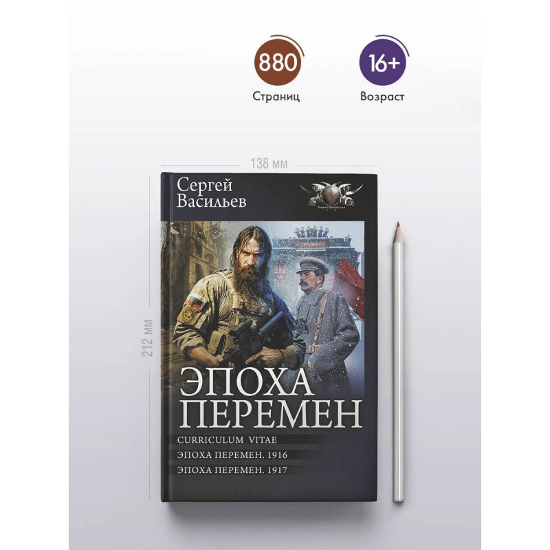 — Исторический боевик с элементами политического детектива в жанре альтернативной истории. — Три книги цикла под одной обложкой: «Curriculum vitae», «Эпоха перемен. 1916», «Эпоха перемен. 1917». — Сергей Васильев использует реальные исторические события как опору для повествования, что делает книгу познавательной для широкого круга читателей. — Первая часть трилогии — это своеобразная история Отечества в период 1985-2019 гг., рассказанная через призму судьбы одного человека. В дальнейшем главный герой получает фантастический шанс на обнуление всех мрачных событий, уготованных нашей стране.