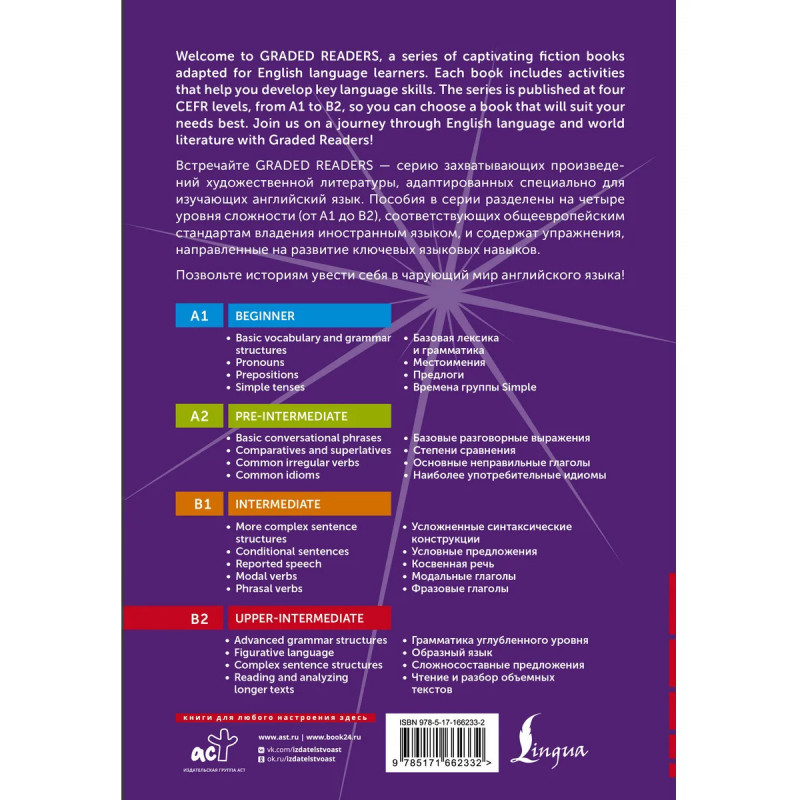 "Великий Гэтсби" — это классический американский роман, действие которого происходит в 1920-х годах, в эпоху джаза и экономического подъёма после Первой мировой войны. Главный герой, Джей Гэтсби, таинственный и богатый молодой человек, живет в роскошном особняке на Лонг-Айленде и устраивает роскошные вечеринки. За фасадом его богатства скрываются трагические тайны и несбывшиеся мечты. Он одержим любовью к Дейзи Бьюкенен, девушке из его прошлого, и его жизнь — это стремление вернуть её любовь. История рассказывается от лица Ника Каррауэя, молодого человека, который переехал на Лонг-Айленд и стал свидетелем жизни высшего общества того времени. Его глазами читатель видит трагедию, крушение идеалов и глубокое одиночество героев. Роман затрагивает темы американской мечты, любви, жадности и моральной пустоты, делая его актуальным и по сей день. Текст романа адаптирован для уровня B2 и снабжен глоссарием. Также книга включает в себя упражнения для того, чтобы проверить свои знания.