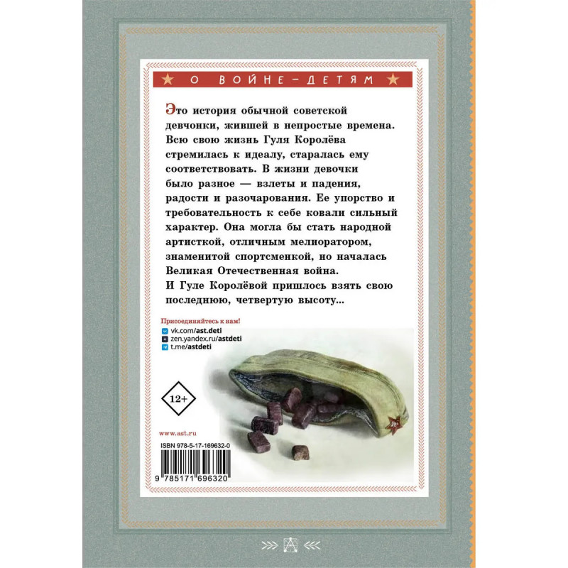 Это история обычной советской девчонки, жившей в непростые времена. Всю свою жизнь Гуля Королёва стремилась к идеалу, старалась ему соответствовать. В жизни девочки было разное – взлеты и падения, радости и разочарования. Ее упорство и требовательность к себе ковали сильный характер. Она могла бы стать народной артисткой, отличным мелиоратором, знаменитой спортсменкой, но началась Великая Отечественная война. И Гуле Королёвой пришлось взять свою последнюю, четвертую высоту…