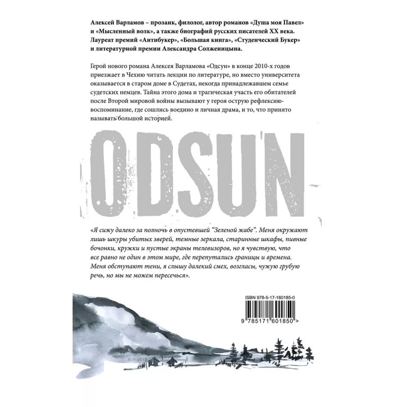 Одсун. Когда тайна чужого дома становится твой личной драмой. Новая книга лауреата премии "Большая книга" Алексея Варламова - исследование любви и ненависти, размышление о том, как глобальное влияет на внутреннее, а общее на частное. "Одсун" - классический большой роман, с множеством ветвящихся дорожек, которые сходятся в единый мотив поиска справедливости и равновесия между беспримесными злом и добром. Алексей Варламов - прозаик, литературовед, автор художественных романов и биографий русских писателей ХХ века, лауреат множества премий, член жюри премии "Ясная Поляна".