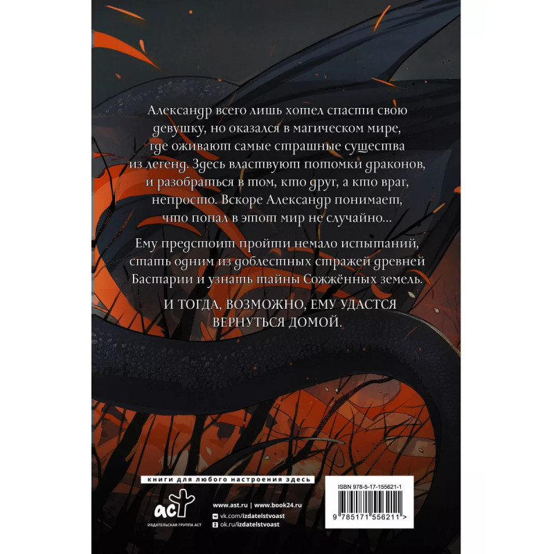 Сожженные земли. Лишний. Откройте для себя удивительную историю Александра в захватывающем мире магии и легенд! Погрузитесь в приключение, где герои встречаются с потомками древних драконов и раскрывают тайны загадочных земель! Не упустите возможность присоединиться к Александру в его опасной миссии: спасти любимую и вернуться домой! Александр хотел лишь спасти свою возлюбленную, но судьба забрасывает его в волшебный мир, населенный ужасающими существами из мифов и легенд. Здесь господствуют потомки могущественных драконов, и определить, кто является союзником, а кто врагом, невероятно сложно. Скоро Александр осознает, что его прибытие в этот мир было не случайным. Ему суждено пройти через множество испытаний, стать одним из отважных стражей древней Бастарии и раскрыть секреты Сожженных земель. Только после всего этого, возможно, ему удастся вернуться домой.