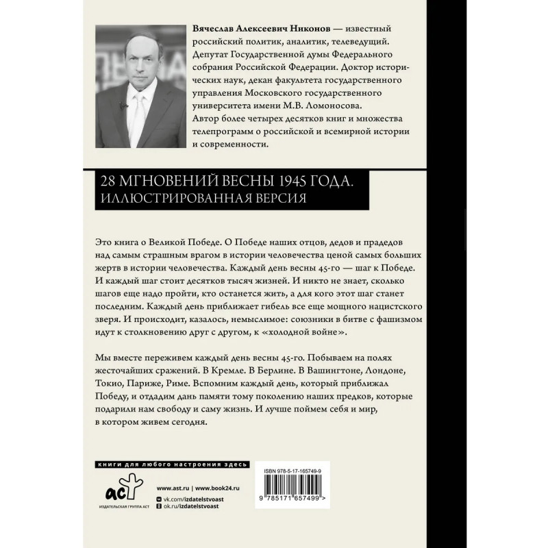 Это книга о Великой Победе. О Победе наших отцов, дедов и прадедов над самым страшным врагом в истории человечества ценой самых больших жертв в истории человечества. Каждый день весны 45-го - шаг к Победе. И каждый шаг стоит десятков тысяч жизней. И никто не знает, сколько шагов еще надо пройти, кто останется жить, а для кого этот шаг станет последним. Каждый день приближает гибель все еще мощного нацистского зверя. И происходит, казалось, немыслимое: союзники в битве с фашизмом идут к столкновению друг с другом, к "холодной войне".
