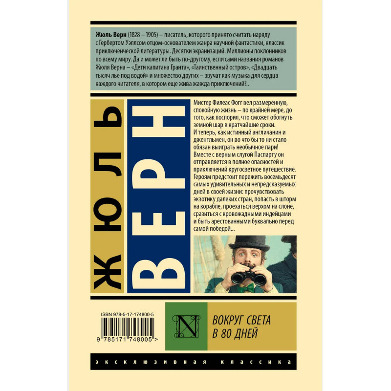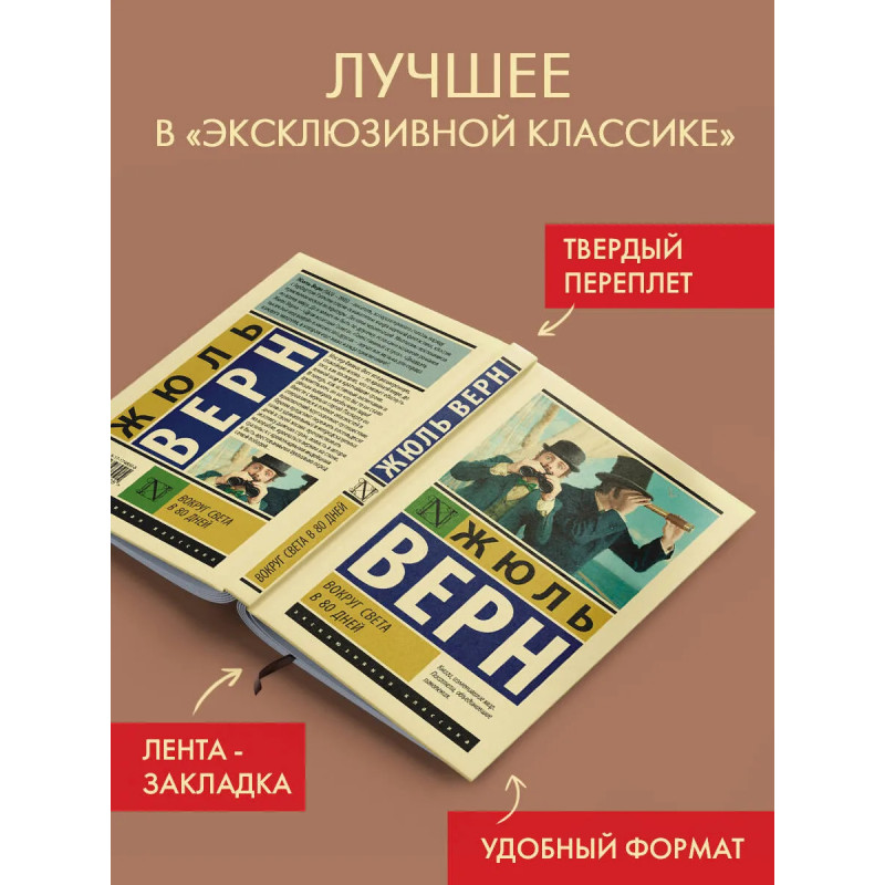 — Жюль Верн — известный французский писатель, мастер приключенческой литературы, один из основателей жанра научной фантастики, автор романов «Таинственный остров», «Двадцать тысяч лье под водой» и «Дети капитана Гранта». — «Вокруг света в 80 дней» — один из самых известных романов Жюля Верна. Роман неоднократно экранизировался, последняя телевизионная адаптация вышла в 2021 году, главную роль сыграл известный британский актер Дэвид Теннант. — Издание в серии «Эксклюзивная классика» — в узнаваемом оформлении и твердой обложке.
