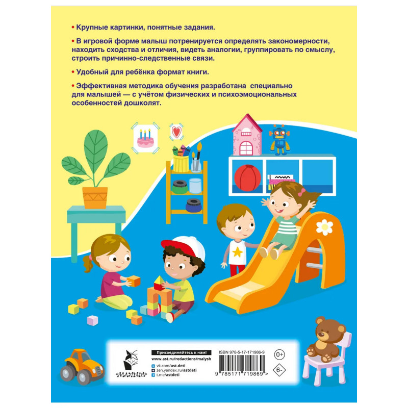 «Зачем моему ребёнку логика? — думают некоторые родители. — В первую очередь ему надо учиться читать и писать». И зря! Ведь логика — это умение быстро анализировать входящую информацию и делать верные выводы. Именно эта способность поможет вашему ребёнку быстрее запомнить буквы и цифры, усвоить любые другие новые знания. Человек с развитым логическим мышлением умеет критически мыслить: он всегда найдёт выход из любой нестандартной ситуации и сможет аргументированно отстоять свою точку зрения. Книга «Логические задачки для малышей» — отличный выбор родителей, заинтересованных в будущих успехах своего ребёнка. В игровой форме малыш потренируется определять закономерности, находить сходства и отличия, видеть аналогии, группировать по смыслу, строить причинно-следственные связи. Все задания основаны на эффективной методике обучения, разработанной специально для малышей — с учётом физических и психоэмоциональных особенностей дошколят.