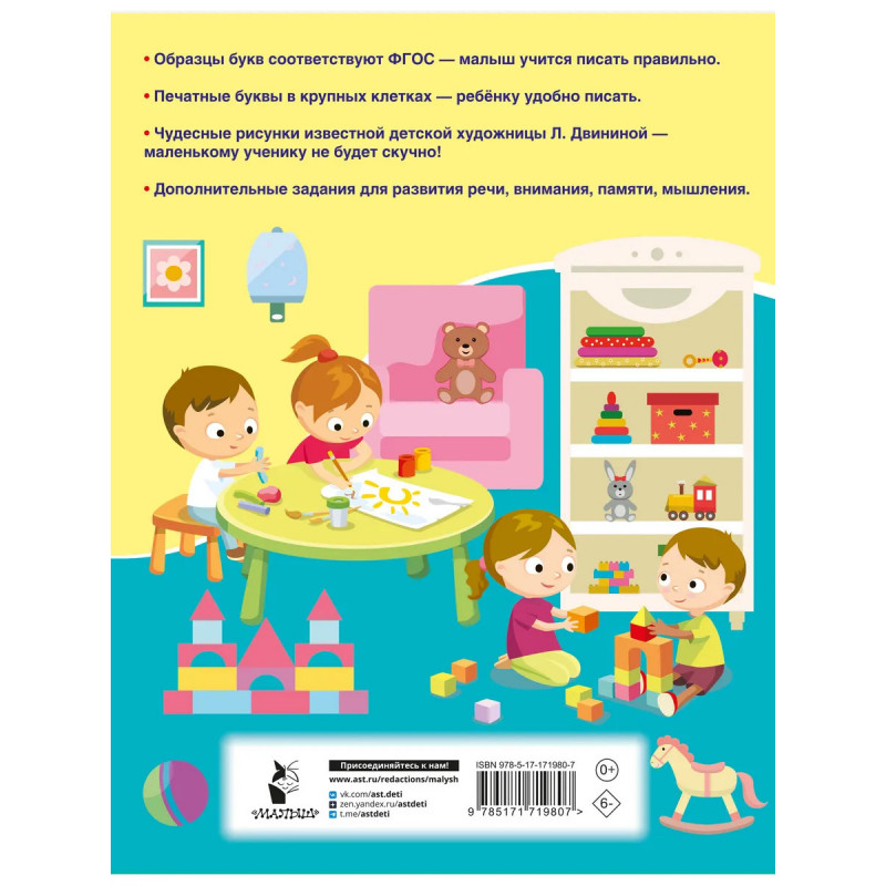 "Развивающие прописи для детского сада. 5-7 лет" созданы специально для маленьких детей. Малыши научатся писать печатные буквы и заодно поиграют в игры для развития речи, внимания, памяти, мышления. Чтобы маленьким ученикам не было скучно, прописи иллюстрированы чудесными рисунками известной детской художницы Л. Двининой.