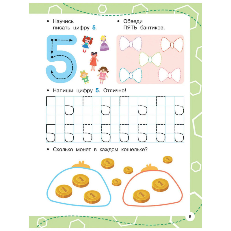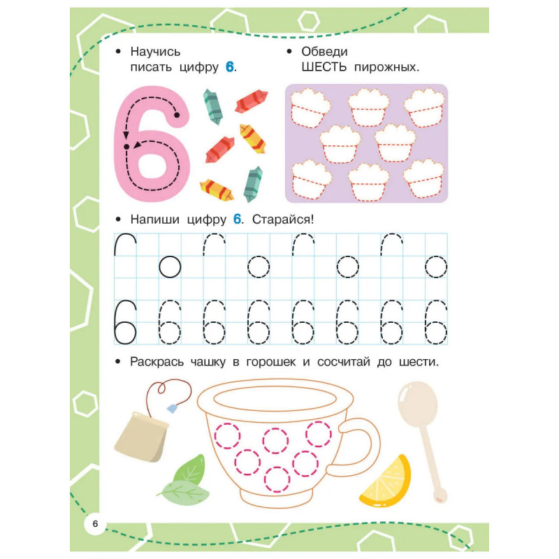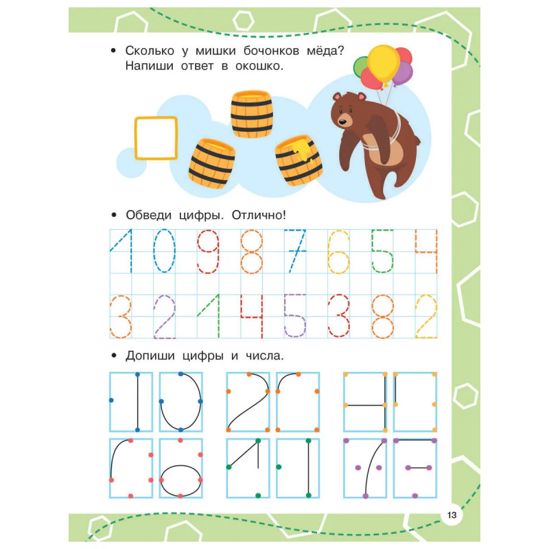• Направляющие стрелочки-помощницы не дадут запутаться в написании цифр!