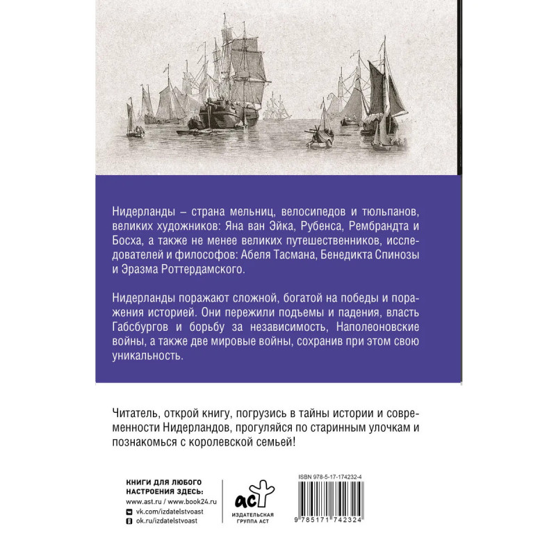 Нидерланды – страна мельниц, велосипедов и тюльпанов, великих художников: Яна ван Эйка, Рубенса, Рембрандта и Босха, а также не менее великих путешественников, исследователей и философов: Абеля Тасмана, Бенедикта Спинозы и Эразма Роттердамского. Нидерланды поражают сложной, богатой на победы и поражения историей. Они пережили подъемы и падения, власть Габсбургов и борьбу за независимость, Наполеоновские войны, а также две Мировые войны, сохранив при этом свою уникальность. Читатель, открой книгу, погрузись в тайны истории и современности Нидерландов, прогуляйся по старинным улочкам и познакомься с королевской семьей!