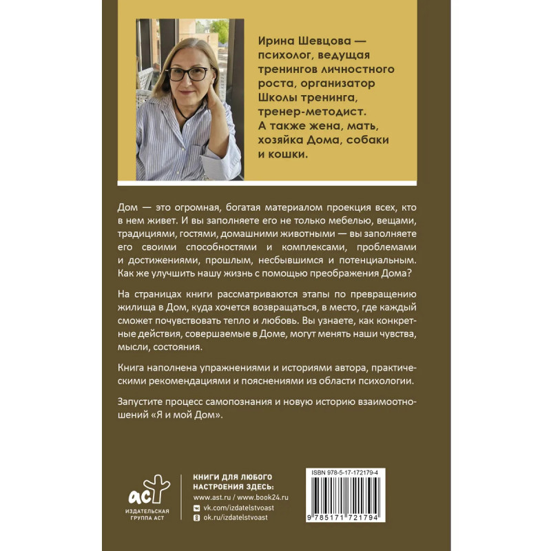 Дом — это огромная, богатая материалом проекция всех, кто в нем живет. И вы заполняете его не только мебелью, вещами, традициями, гостями, домашними животными — вы заполняете его своими способностями и комплексами, проблемами и достижениями, прошлым, несбывшимся и потенциальным. Как же улучшить нашу жизнь с помощью преображения Дома? На страницах книги рассматриваются этапы по превращению жилища в Дом, куда хочется возвращаться, в место, где каждый сможет почувствовать тепло и любовь. Вы узнаете, как конкретные действия, совершаемые в Доме, могут менять наши чувства, мысли, состояния. Книга наполнена упражнениями и историями автора, практическими рекомендациями и пояснениями из области психологии. Запустите процесс самопознания и новую историю взаимоотношений "Я и мой Дом".