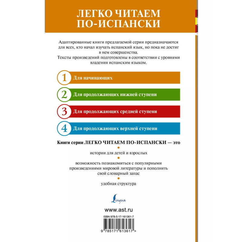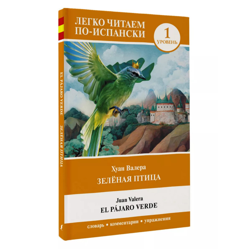 "Зелёная птица" сказочная повесть испанского писателя Хуана Валера-и-Алькала-Гальяно об овдовевшем короле, отважной принцессе и заколдованном злым татарским ханом китайском принце. Теперь историю о преодолении препятствий на пути к любви могут прочитать даже те, кто только начал изучение испанского языка! Текст книги сокращён, адаптирован и сопровождается комментариями и упражнениями с ответами. Также в конце книги вы найдёте небольшой испанско-русский словарь, который поможет вам с выполнением заданий. Пособие предназначается для начинающих изучать испанский язык (уровень 1 для начинающих А1А2). Небольшой формат издания позволяет читать произведение как дома, так и в поездке.