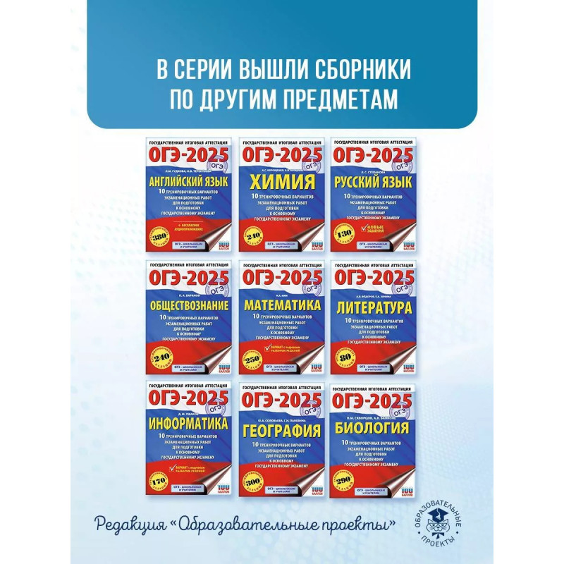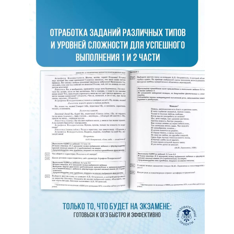 Вниманию школьников предлагается пособие для подготовки к основному государственному экзамену, которое содержит 10 тренировочных вариантов экзаменационной работы. Каждый вариант составлен в полном соответствии с требованиями государственной итоговой аттестации в 9 классе, включает задания разных типов и уровней сложности. Пособие может использоваться учащимися для самоподготовки и учителями для организации текущего контроля уровня литературной образованности выпускников 9 классов и для подготовки их к сдаче основного государственного экзамена.