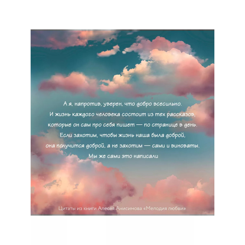 Мелодия любви. О чудиках, проснувшейся нежности и кухонном детекторе лжи. Алексей Анисимов называет свои рассказы "терапевтическими". Автор видит смысл своего творчества в том, чтобы нести свет, любовь и радость людям. Его добрые, полные надежды и позитива рассказы уже полюбились многим - блог "Рассказы Анисимова" читают более 4 500 000 человек в месяц! В книге вы найдете как уже знакомые, так и совершенно новые рассказы, которые откроют мастерство автора с неожиданной стороны. Из книги вы узнаете: почему нельзя парковаться рядом с надписью на снегу, как выиграть мужа в лотерею, как завести настоящего друга и почему лучше не смотреть вправо, когда пропалываешь картошку. Терапевтические истории о любви и маленьких чудесах исцеляют уставшую душу от грусти и заботливо укутывают атмосферой радости и умиротворения. Подарите отдых для души себе и близким с книгой Алексея Анисимова "Мелодия любви".