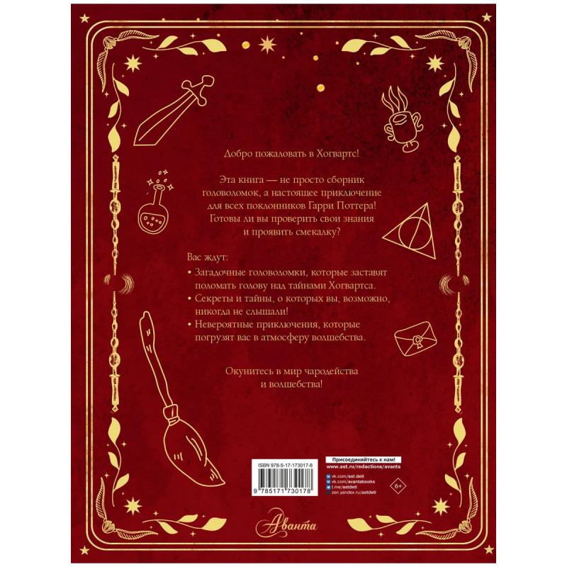 Добро пожаловать в Хогвартс! Эта книга – не просто сборник головоломок, а настоящее приключение для всех поклонников Гарри Поттера! Готовы ли вы проверить свои знания и проявить смекалку? Вас ждут: • Загадочные головоломки, которые заставят поломать голову над тайнами Хогвартса. • Секреты и тайны, о которых вы, возможно, никогда не слышали! • Невероятные приключения, которые погрузят вас в атмосферу волшебства. Окунитесь в мир чародейства и волшебства!