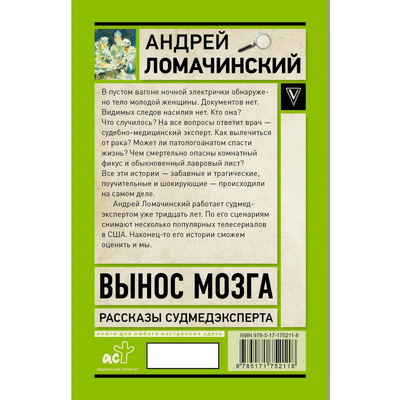 В пустом вагоне ночной электрички обнаружено тело молодой женщины. Документов нет. Видимых следов насилия нет. Кто она? Что случилось? На все вопросы ответит врач – судебно-медицинский эксперт. Как вылечиться от рака? Может ли патологоанатом спасти жизнь? Чем смертельно опасны комнатный фикус и обыкновенный лавровый лист? Все эти истории – забавные и трагические, поучительные и шокирующие – происходили на самом деле. Андрей Ломачинский работает судмедэкспертом уже тридцать лет. По его сценариям снимают несколько популярных телесериалов в США. Наконец-то его истории сможем оценить и мы.