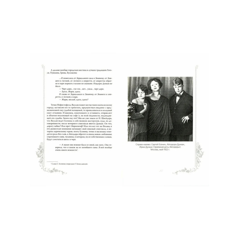 «Любящий Вас Сергей Есенин» – так подписывал Сергей Александрович большинство своих писем. «Твоя навеки», «Люблю тебя, ангел и черт» – отвечали Есенину влюбленные в него женщины, отвечала Айседора Дункан. История знакомства и любви, жизни и смерти поэта Сергея Есенина и танцовщицы Айседоры Дункан не увлекательный роман, а цепь трагических обстоятельств, приведших сначала его, а через два года и ее к неминуемой гибели. Есенин и Дункан – пожалуй, нельзя придумать двух более не подходящих друг другу людей. Разница в возрасте, невозможность разговаривать без переводчика – Айседора не знала русского, Есенин не желал учить какой-либо другой язык. Добавьте к этому воспитание, круг общения, опыт… И все же они были предназначены друг для друга. Два гения в мире людей, два поэта-идеалиста в мире победившего материализма. Они разговаривали друг с другом на языке любви, и, по многочисленным свидетельствам, с первой секунды встречи «невозможно было поверить в то, что эти двое видят друг друга впервые.