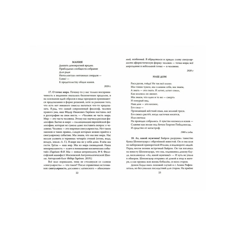 Автор, юрист по образованию и практической работе, не будучи специалистом в области филологии или истории, имея только навыки и мыслящее знание, на профессиональном уровне решил некоторые закрученные проблемы в этих областях. Поэтому в книгу включены тексты о «темных местах» в Летописях и в «Слове о полку Игореве». Из разысканий смысла в современных событиях особый интерес представляет работа «Битва СССР с Третьим рейхом». Стихотворная часть книги, отличающаяся сочетанием реального и поэтических озарений, углубляет представление о творческих путях автора.