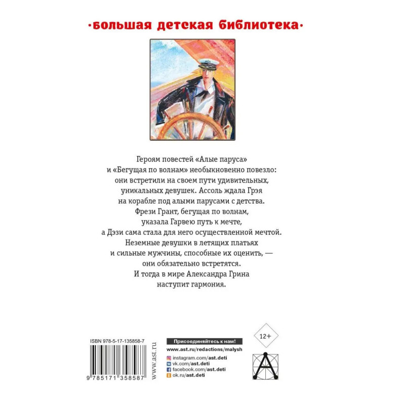 В книгу вошли две самые знаменитые повести Александра Грина: Алые паруса и Бегущая по волнам. Эти романтические истории о любви, не подвластной ни времени, ни расстояниям, волновали сердца не одного поколения подростков, а их герои по-прежнему остаются идеалами возвышенных чувств. Для среднего школьного возраста.