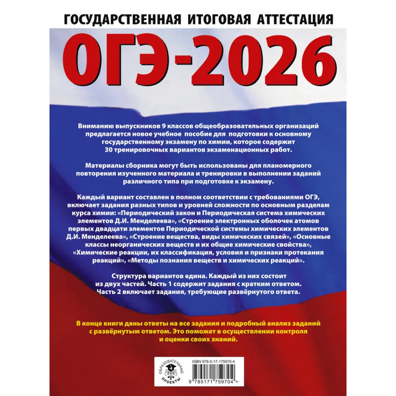 ОГЭ-2026. Химия. 30 тренировочных вариантов