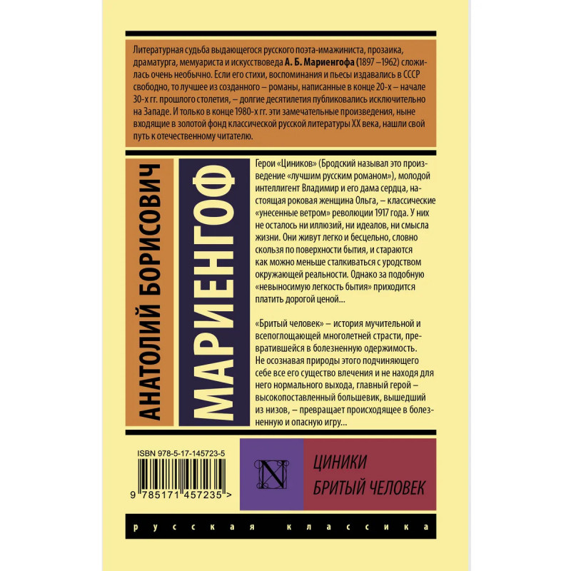 Герои "Циников" (Бродский называл это произведение "лучшим русским романом") молодой интеллигент Владимир и его дама сердца, настоящая роковая женщина Ольга, — классические "унесенные ветром" революции 1917-го года. У них не осталось ни иллюзий, ни идеалов, ни смысла жизни. Они живут легко и бесцельно, словно скользя по поверхности бытия, и стараются как можно меньше сталкиваться с уродством окружающей реальности. Однако за подобную "невыносимую легкость бытия" приходится платить дорогой ценой... "Бритый человек" - история мучительной и всепоглощающей многолетней страсти, превратившейся в болезненную одержимость. Не осознавая природы этого подчиняющего себе все его существо влечения и не находя для нее нормального выхода, главный герой — высокопоставленный большевик, вышедший из низов — превращает происходящее в болезненную и опасную игру...