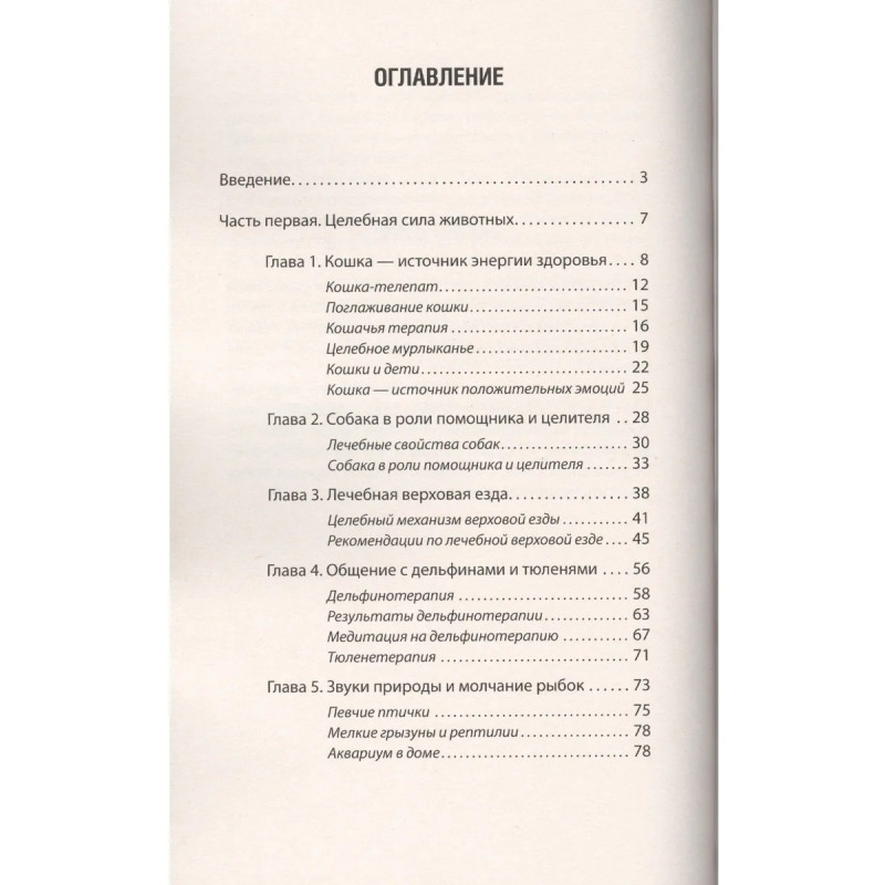 Автор книги делится с читателем результатами своих наблюдений, исследований, а также опытом практической работы по улучшению состояния здоровья человека с помощью общения с домашними животными, певчими птицами и рыбками. .Читатель узнает о том, какдомашняя кошка и собака активно помогают человеку снять стресс, избавиться от депрессии, «забирают» его боль и скрашивают одиночество. .Общение с лошадьми также помогает снять излишнее психическое и мышечное напряжение. Кроме того, умеренная верховая езда нормализует работу сердца и понижает содержание сахара в крови. Она также помогает при нарушениях двигательной сферы, психических заболеваниях, дефектах осанки и т. п. .Дельфинов трудно отнести к домашним животным. Тем не менее, люди нашли с ними язык общения, научились с помощью этих дружелюбных млекопитающих исцеляться от тяжелых заболеваний. .Об этих и других методах естественного оздоровления, в том числе о целебном взаимодействии с деревьями, вы узнаете, прочитав эту книгу. .Книга предназначена для широкого кр