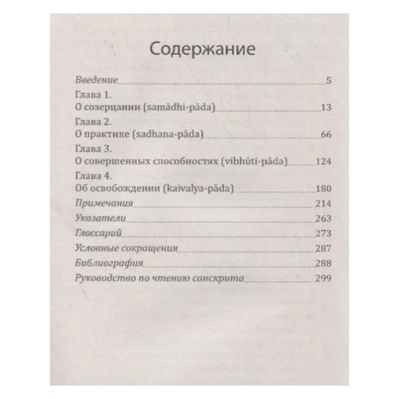 В этом древнем тексте изложены основные идеи философии, психологии и практики йоги. Описаны когнитивные процессы, структуры ума, уровни развития, бессознательные функции, причины и факторы, искажающие восприятие реальности и порождающие ложные отождествления. Также приводится системная классификация высших когнитивных состояний и основы созерцательных практик. Издание содержит текст деванагари, транслитерацию, многовариантный пословный и литературный переводы, примечания и необходимый справочный аппарат. .