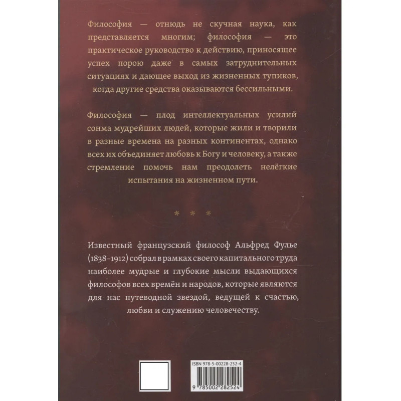 Капитальный труд известного французского философа Альфреда Фулье (1838–1912) объединяет в себе мудрость, изысканность и глубину философии Востока и Запада. В этой книге собраны наиболее известные высказывания великих философов, посвящённые космологии, этике, политике и социологии — начиная от Вед и кончая европейскими мыслителями XIX века. Приобретя эту книгу для своей библиотеки, вы всегда будете иметь под рукой сокровищницу вневременной мудрости человечества, которая может послужить руководством для действий в трудную минуту или подсказкой при решении сложных проблем, а также расширит ваш кругозор и поднимет уровень общей культуры.