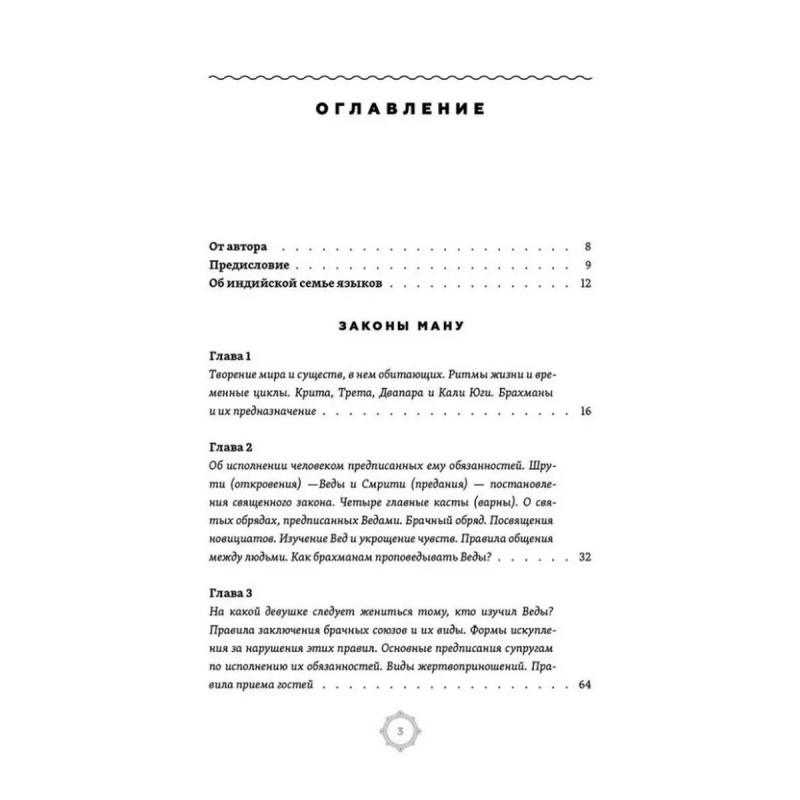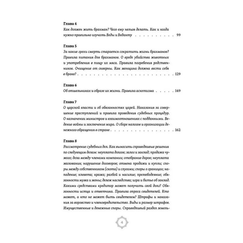 «Законы Ману» — древнеиндийский сборник права, религиозно-нравственных и правовых предписаний, приписываемый традицией легендарному прародителю человечества — Ману. По современным представлениям этот уникальный текст был составлен в период со II века до н.э. по II век н. э., однако его генеалогия прослеживается значительно дальше, до середины II тысячелетия донашей эры, когда северная Индия была завоёвана арийцами. Эта книга состоит из двенадцати глав.
