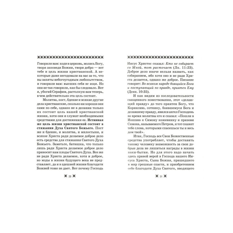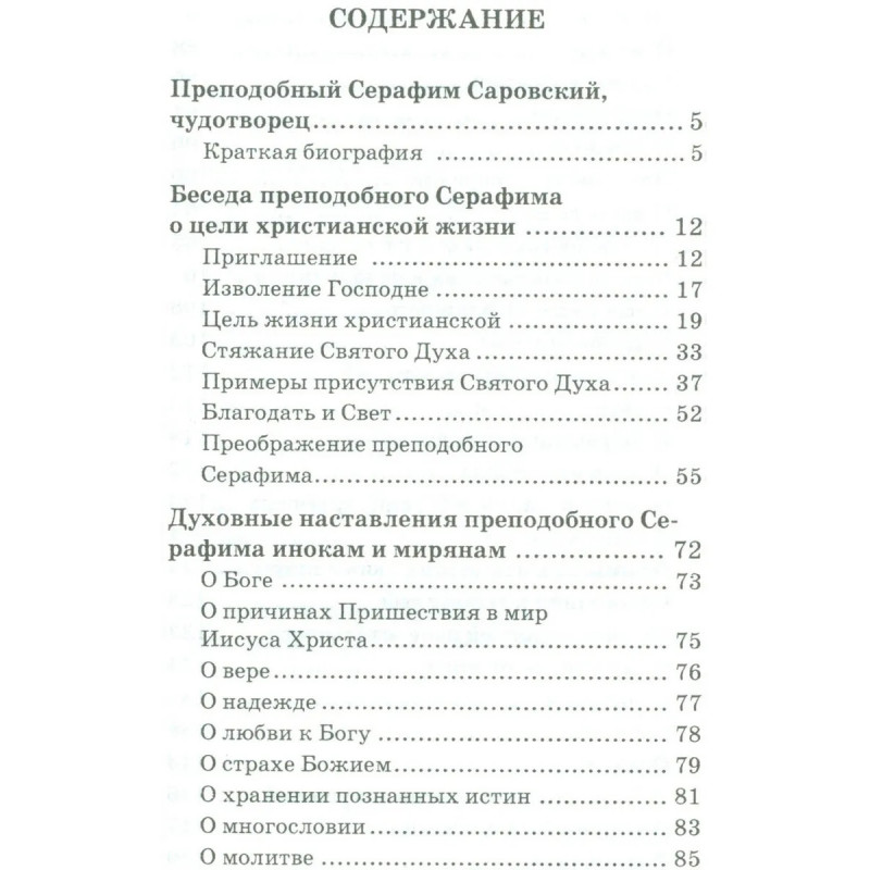 Учитель, духовный наставник и великий подвижник земли русской Серафим Саровский всей своей жизнью показал возможности Духа человеческого. Его духовные наставления и разъяснения о цели жизни человеческой -стяжании Духа Святого - необходимы всем, но особенно полезны тем, кто стоит на духовном пути.