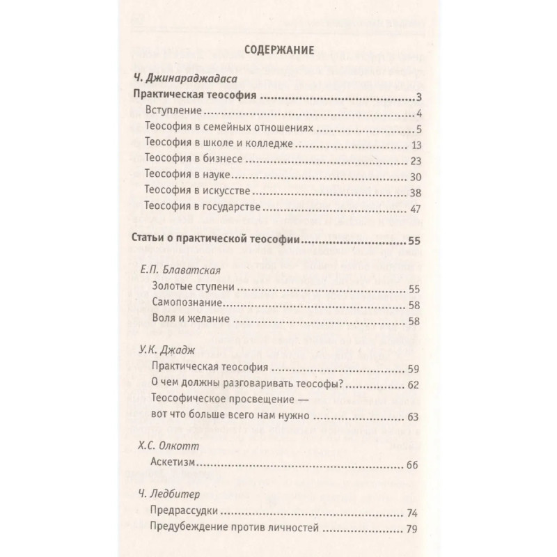Ценность теософии как философии поведения состоит в том, что она подходит человеку в любое время и для любого рода деятельности. Теософские принципы нераздельно вплетаются в ткань всей жизни, как истины эволюции вплетены в ткань Природы. В книгу вошли: работа Ч. Джинараджадаса "Практическая теософия", затрагивающая семейные отношения, школу, колледж, бизнес, искусство, государство, и статьи Е.П. Блаватской, У.К. Джаджа, Ч. Ледбитера о различных аспектах социума с точки зрения теософии. .