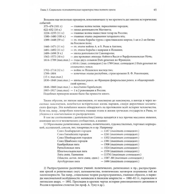 Известная работа советского биофизика Александра Леонидовича Чижевского (1897–1964) посвящена исследованию влияния периодической пятнообразовательной деятельности солнца на поведение организованных масс людей и на течение всемирно-исторического процесса.