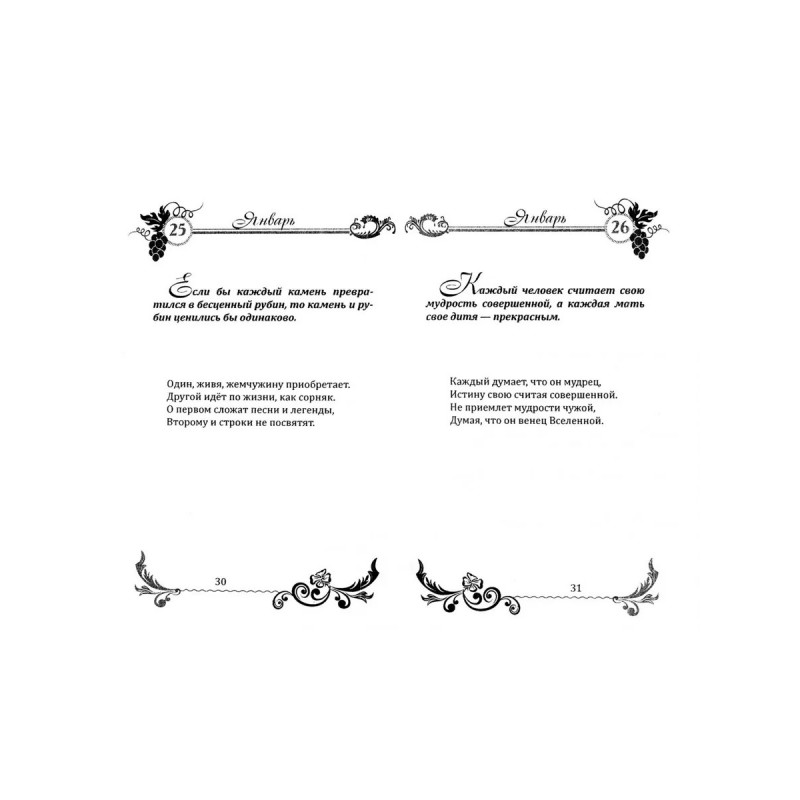 Эта книга представляет собой ежедневник с темами для духовных медитаций. Они помогут в разрешении многих вопросов и проблем, которые жизнь ставит перед человеком. Мудрые изречения, собранные Е.П. Блаватской в книге «Жемчужины Востока», автор сопровождает комментариями в стихотворной форме. Эта книга — своеобразный путеводитель по дорогам человеческой души. Многие истины, важные для автора, кажутся на первый взгляд очевидными, и всё же… Читайте, перечитывайте, и, может быть, какое-то из четверостиший станет для вас ответом на ещё не заданный вопрос.