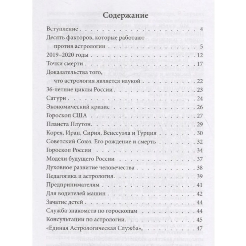В брошюре дана информация о зонах риска на 2019-2020 годы и перспективах развития России и США до 2025 года согласно астрологической науке; как гормонизировать ситуации и минимизировать потери для довольно большой группы людей. .Для астрологов и историков будут интересны исследования о 36-летних циклах России, циклах планеты Плутон и проявлениях критических точек в гороскопах людей и государств. .Издание предназначено для широкого круга читателей. .